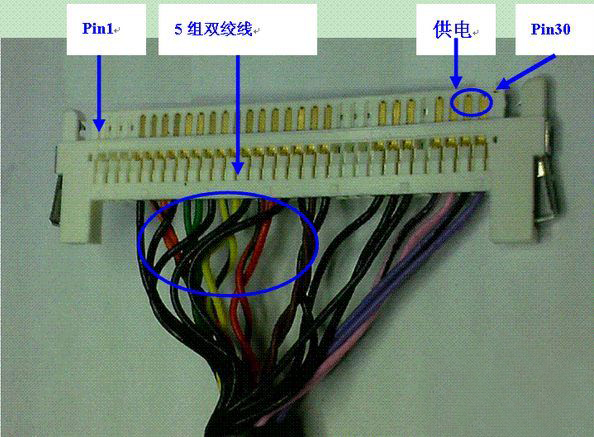 1、LVDS Pin1--4 供電 2、5組LVDS數(shù)據(jù)雙絞線